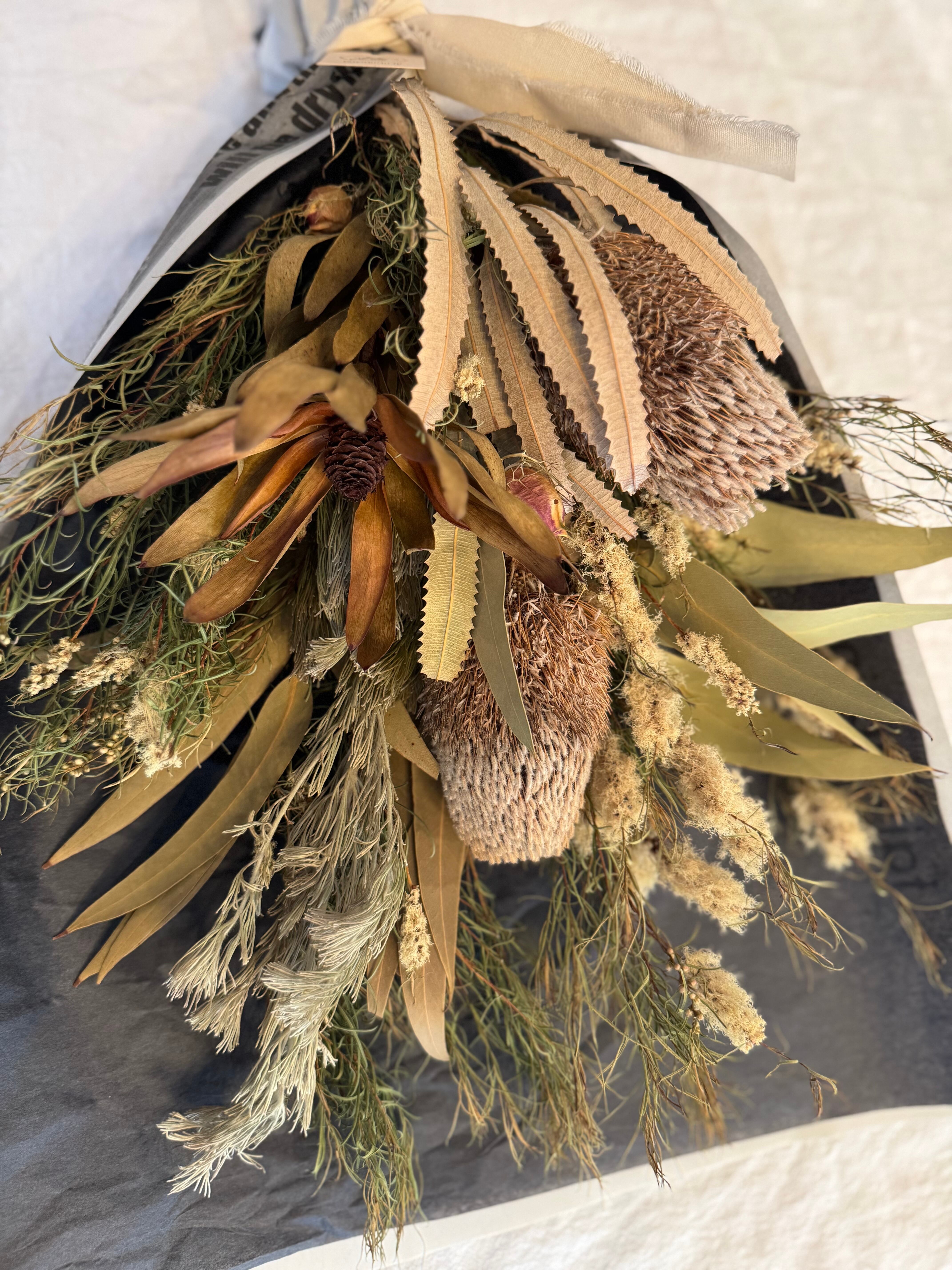 バンクシアやティーツリーなどを束ねたスワッグ。