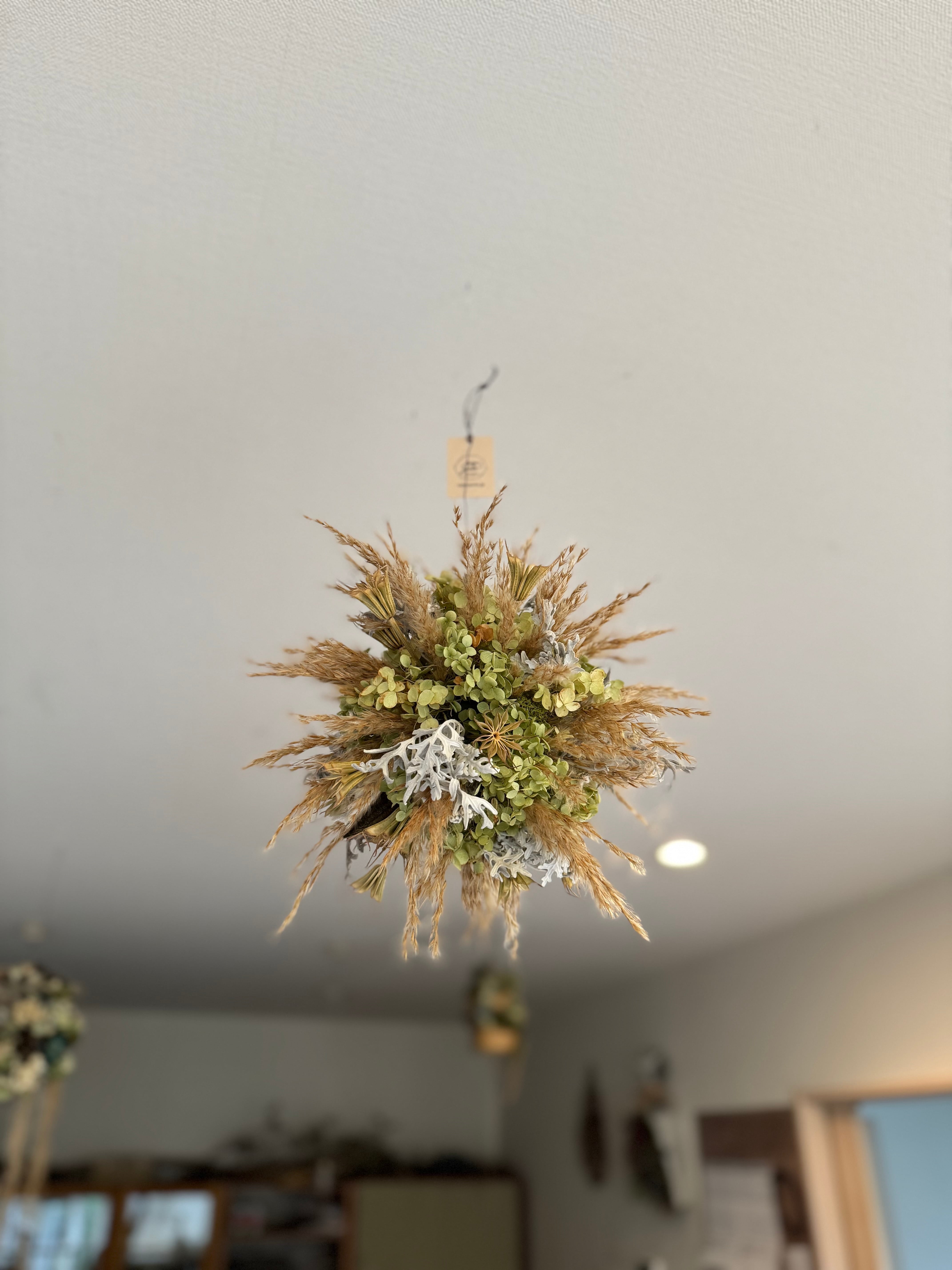 ブルームリードやアナベル、ダスティミラーなどソフトな色合いのボール。 サイズφ約20センチ ブルームリード、アナベル、ダスティミラー、ニゲラオリエンタリスなど ご注文いただいてから1週間以内にお届けさせて頂きます。