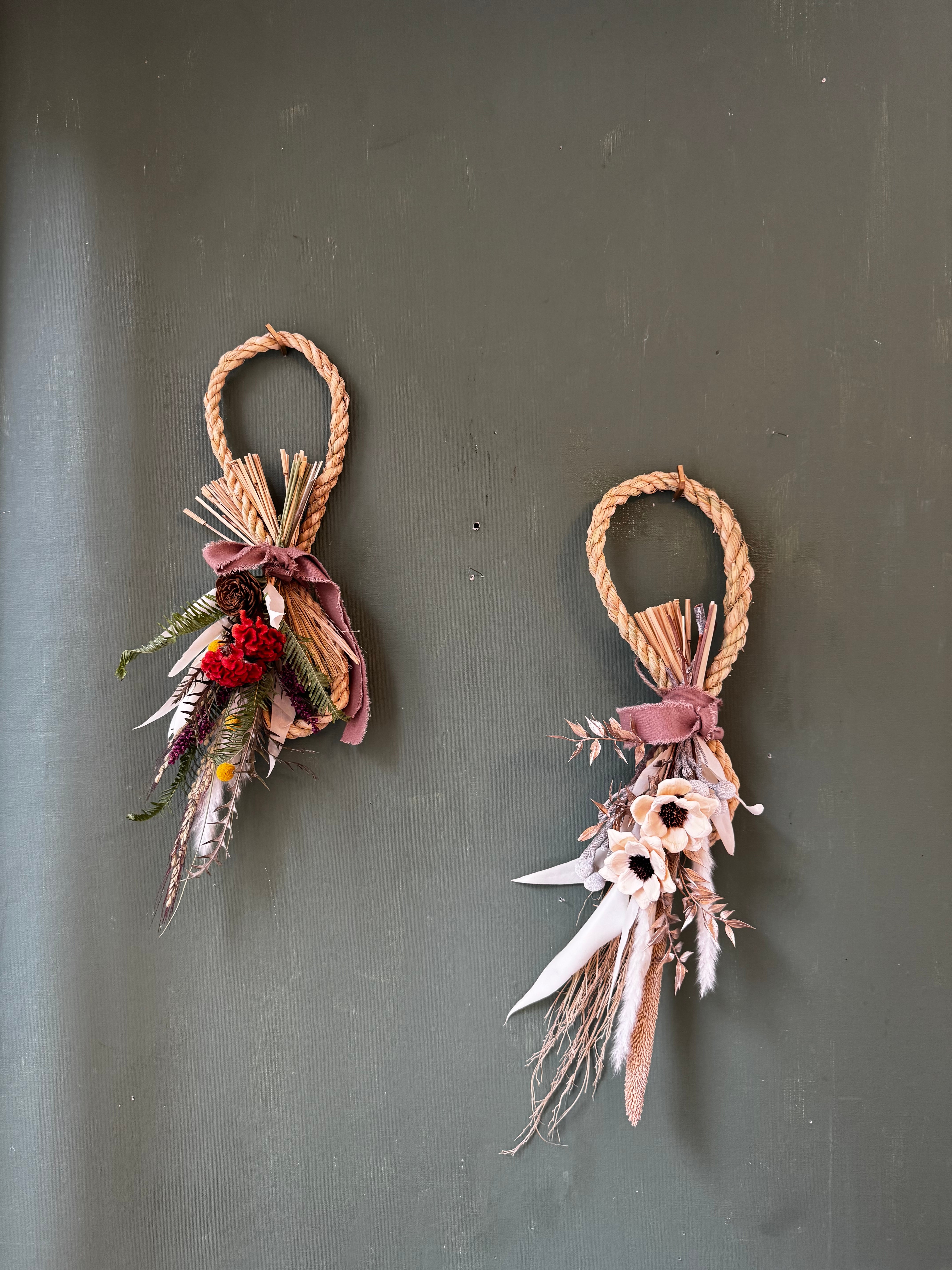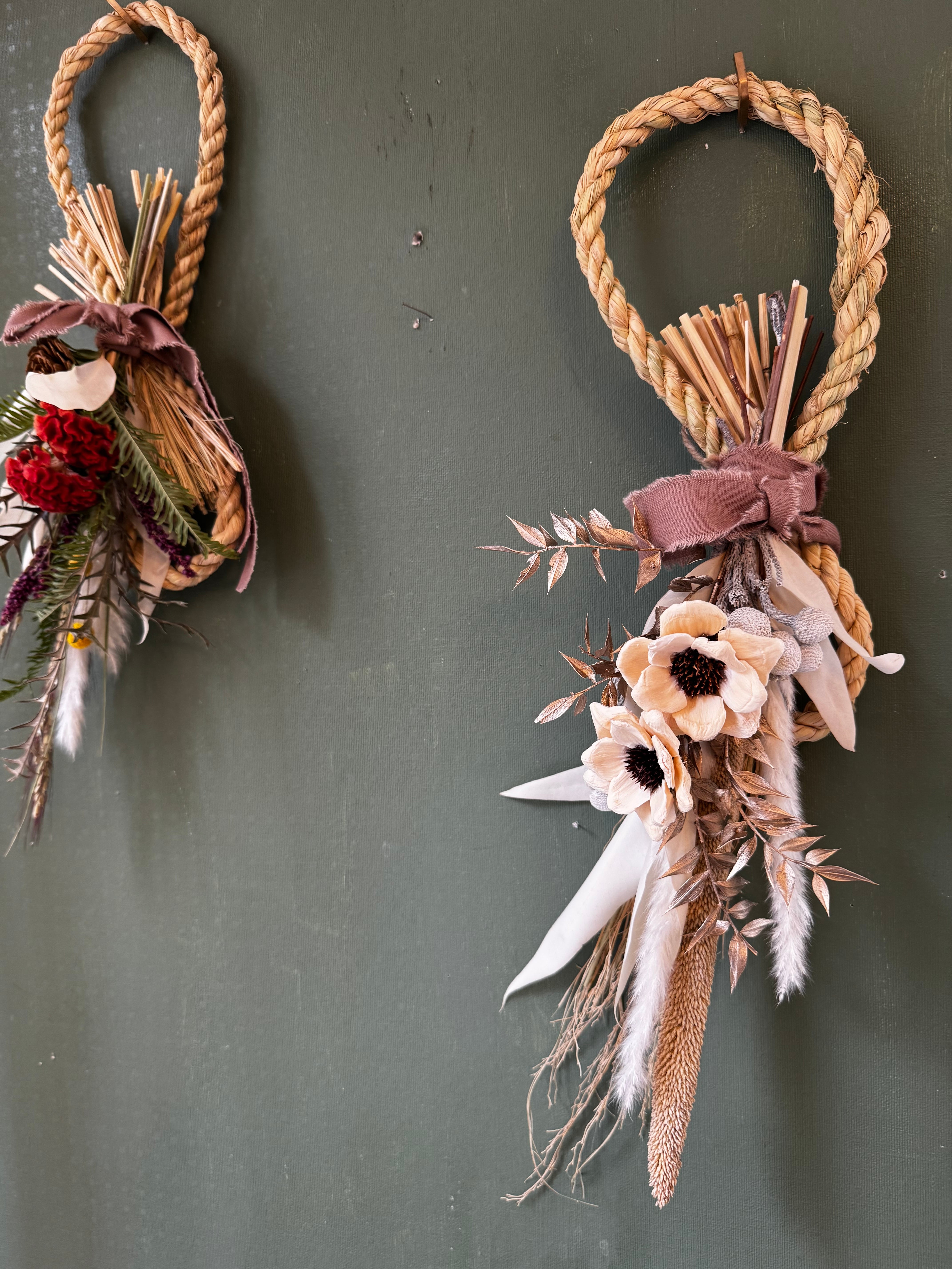 お花部分はお正月の後、縄から取り外してスワッグとして飾ることができます。