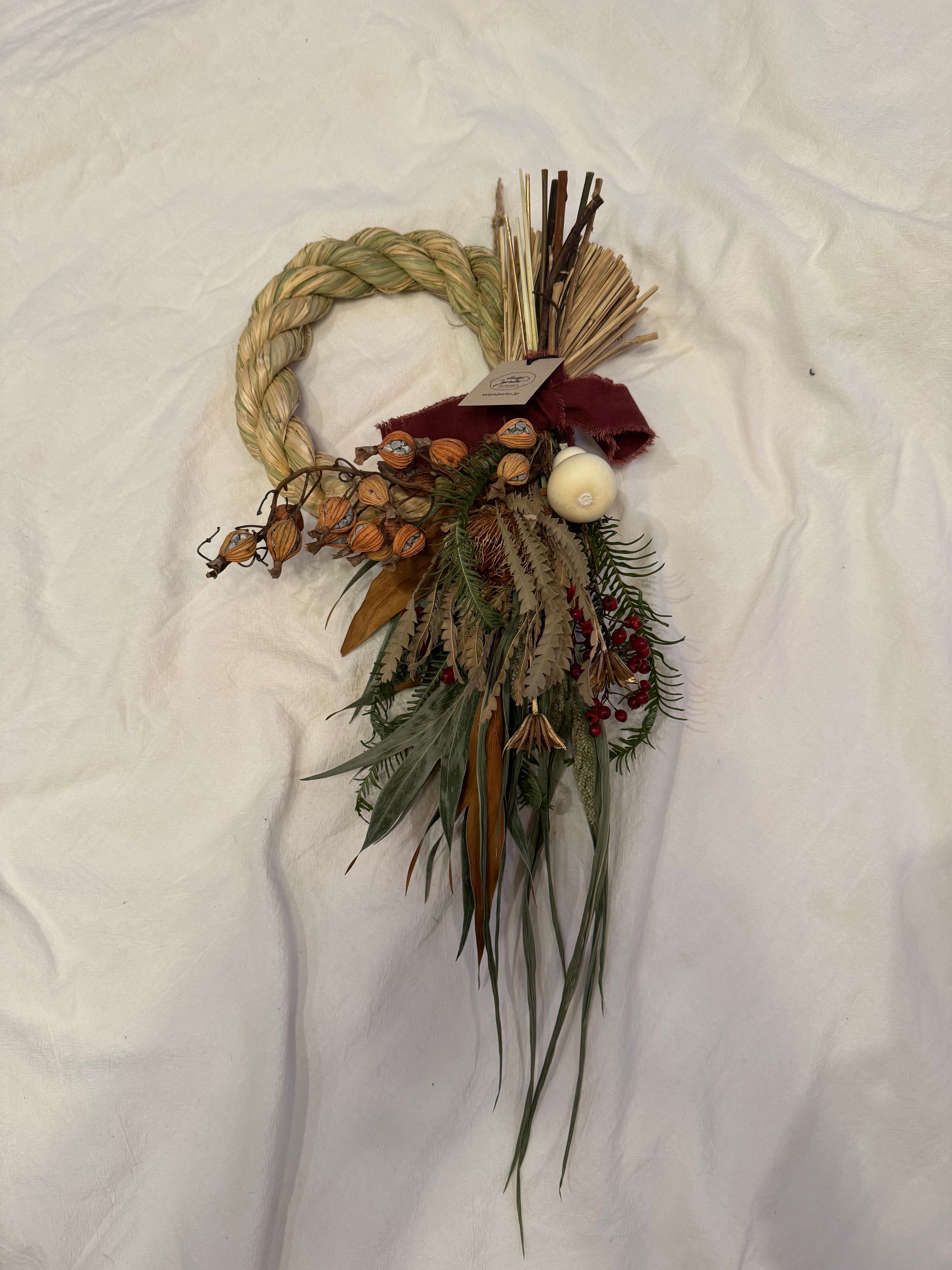 ドライフラワーを使ったしめ縄飾りです。