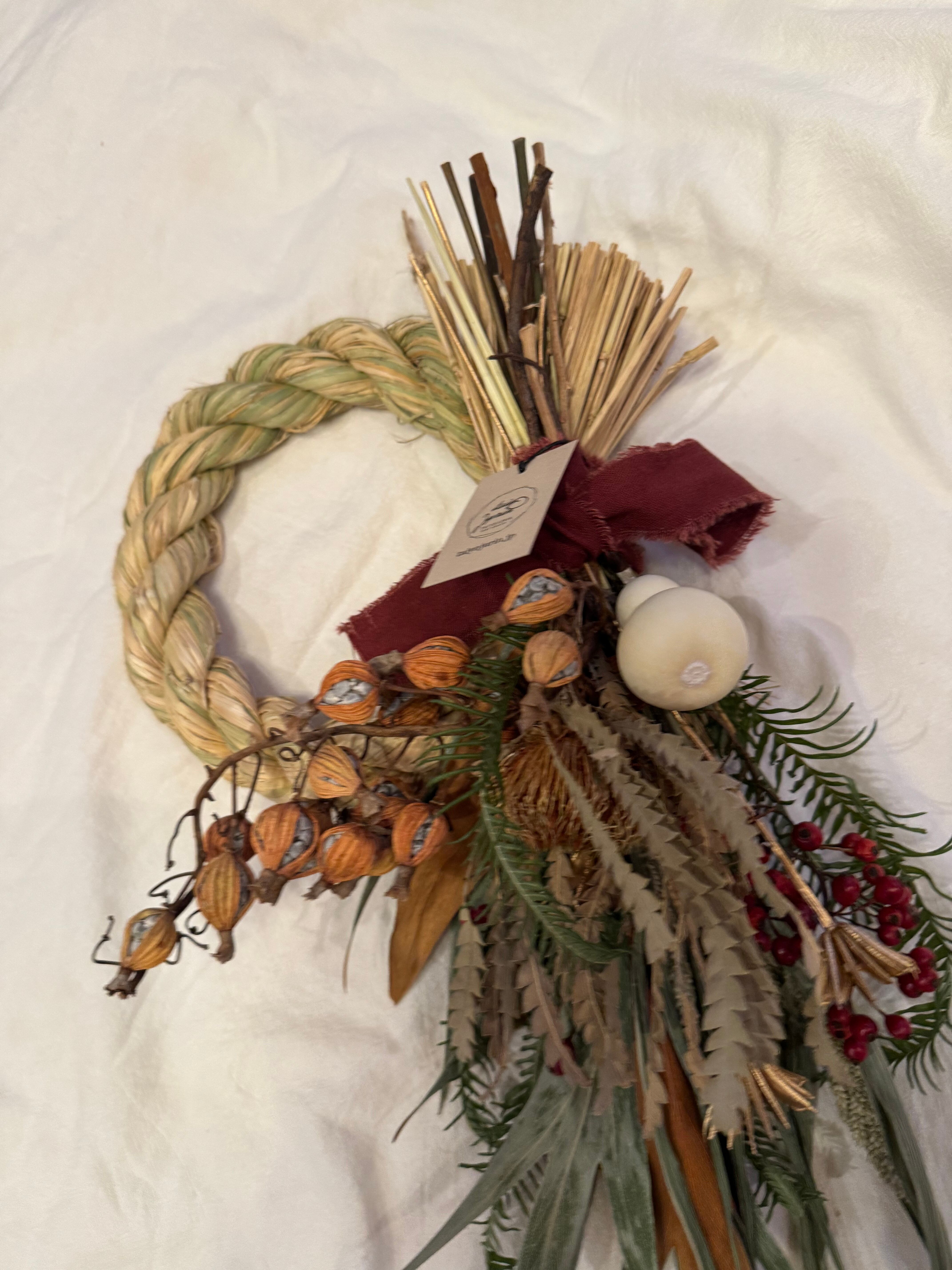 お花部分はお正月の後、縄から取り外してスワッグとして飾ることができます。