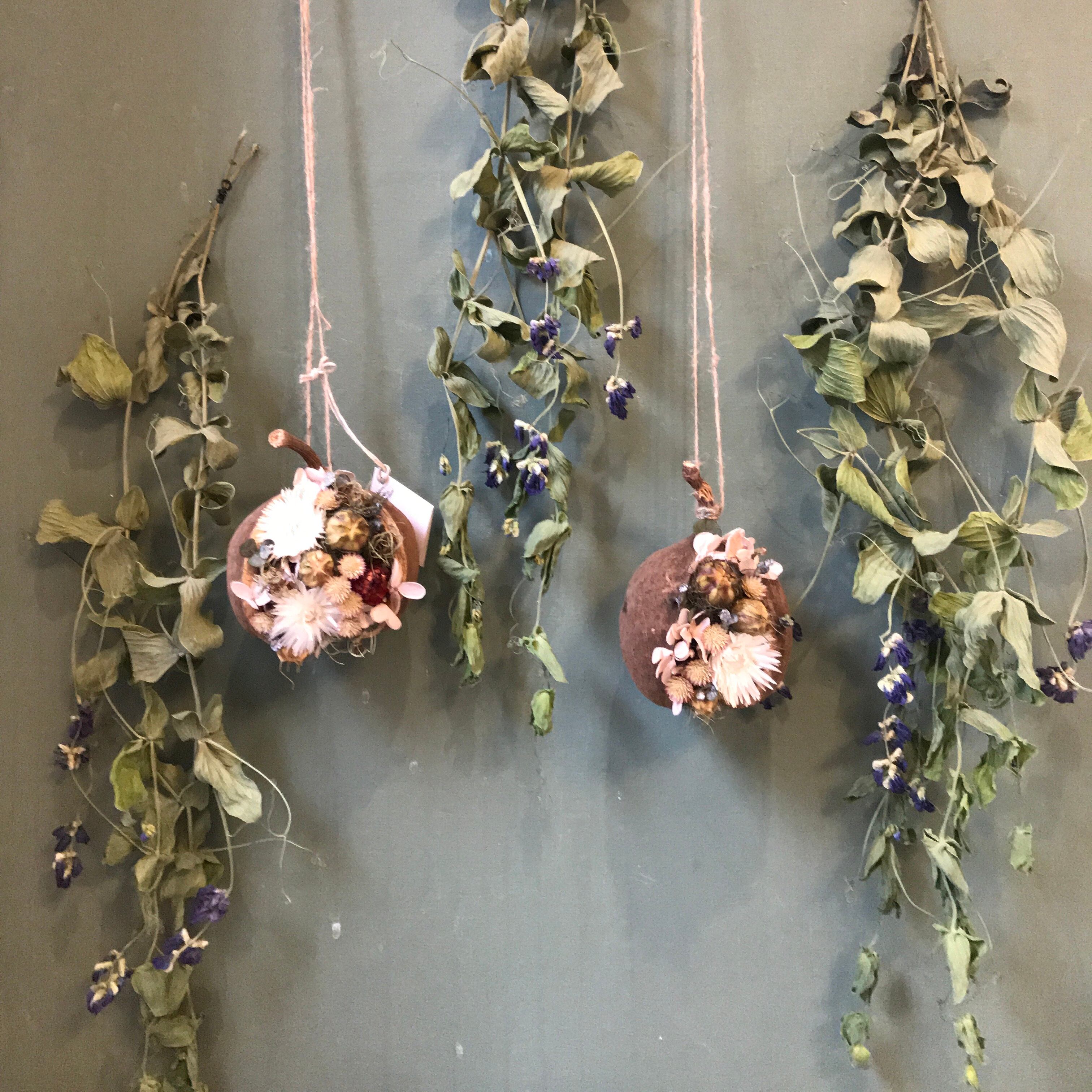 「幸せを呼ぶ実」と言われるブッタナッツに小花や木の実をアレンジしました。 紙袋をご希望の方は備考欄にお書きください。 サイズ 約 縦11.5cm(ツルを含む) 横11cm 奥行10cm
