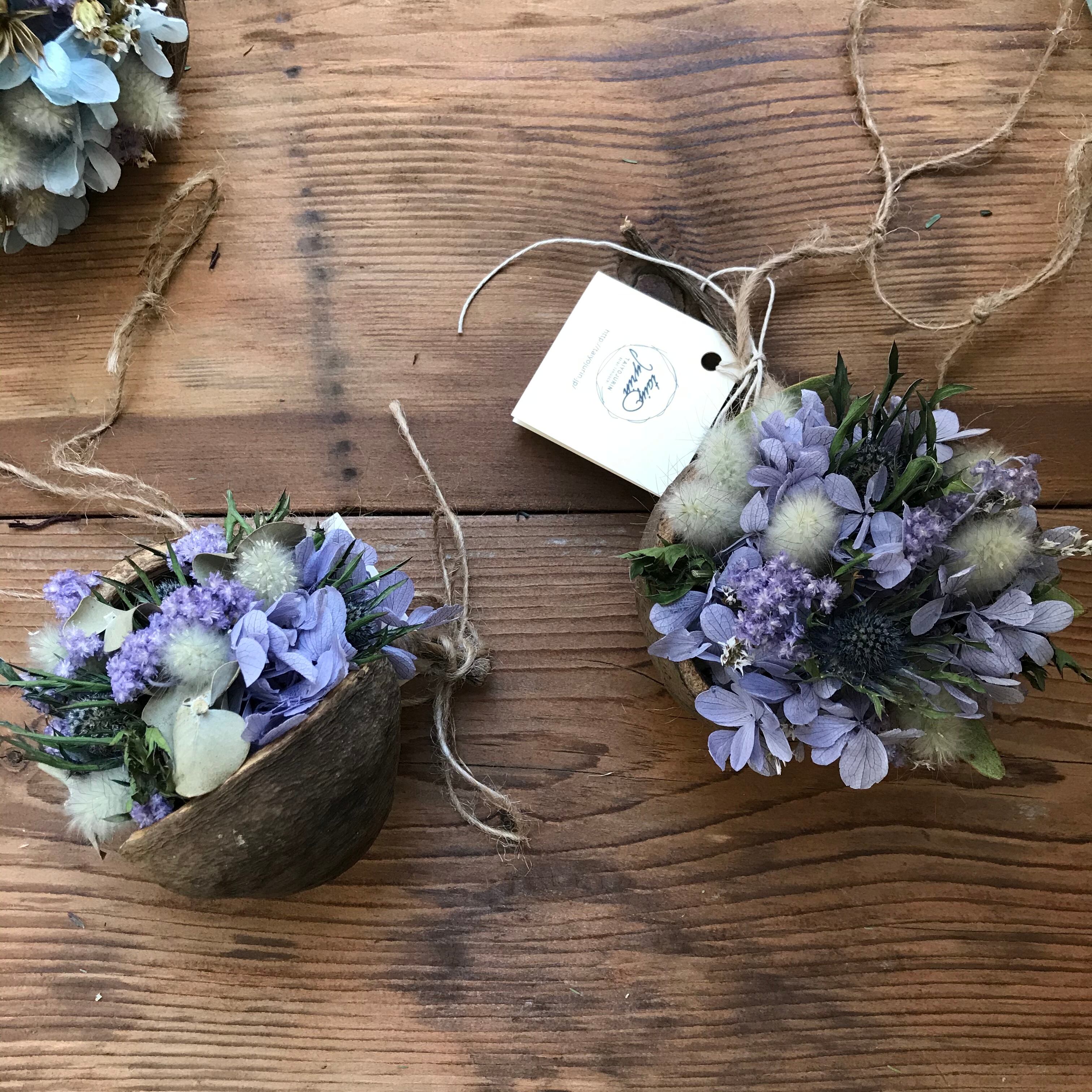 「幸せを呼ぶ実」と言われるブッタナッツに小花や木の実をアレンジしました。