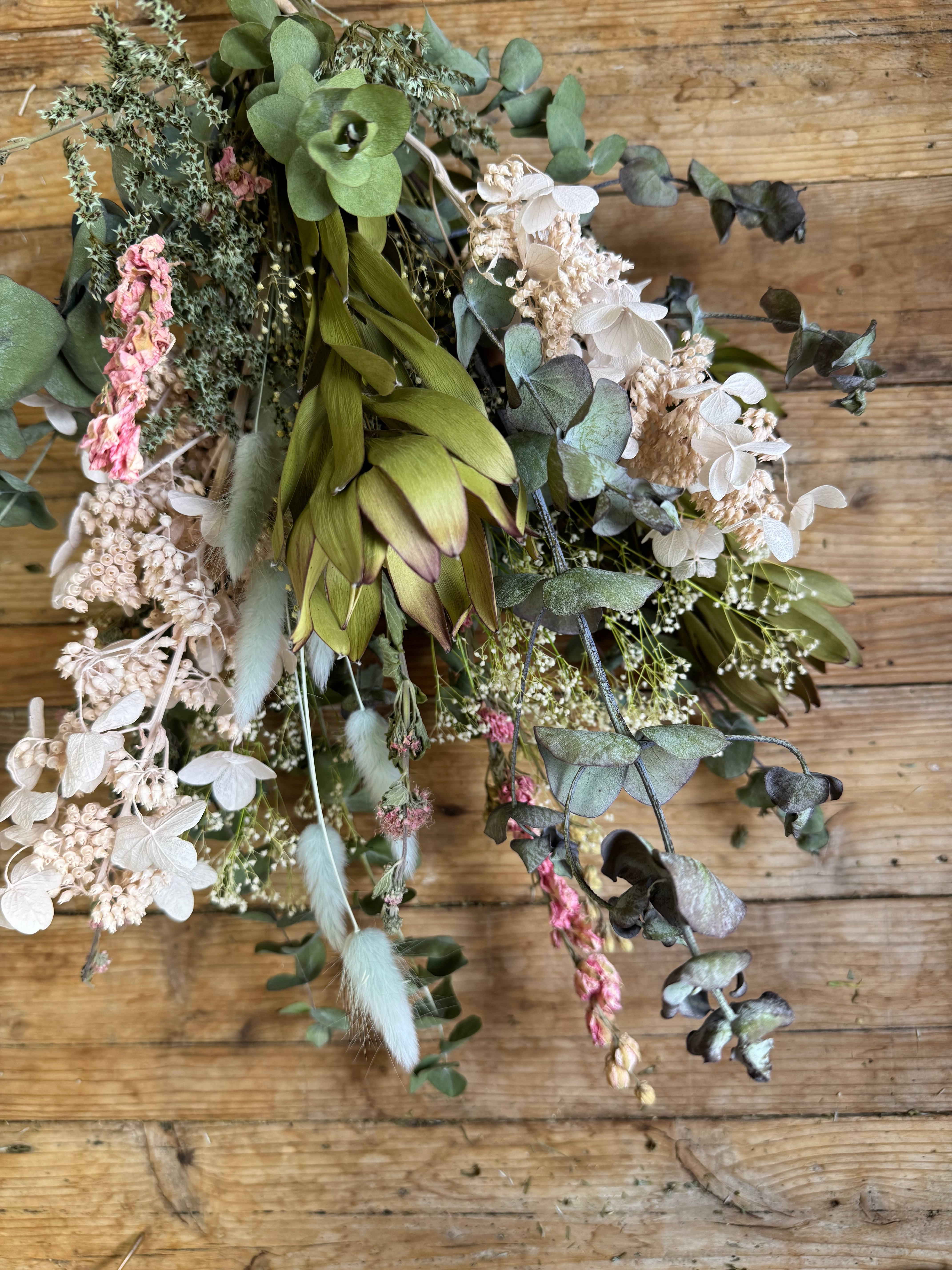 ・下向きに吊るしてスワッグとして飾る(ラッピングのまま、ラッピングを外すはお好みで)